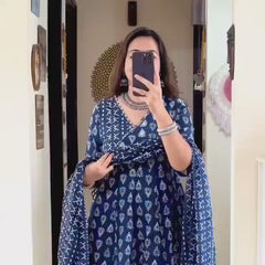 Grace your everyday ethnic style with the Indigo Charm Printed Kurta Set with Dupatta. Crafted in a deep indigo blue shade, this kurta features delicate all-over ethnic motifs complemented by a flattering V-neckline. The coordinated printed dupatta with contrast border detailing adds a refined traditional touch.